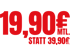 Für kurze Zeit trainierst du bei uns die ersten 2 Monate für nur 19,90€ statt 39,90€/mtl.* Ab dem dritten Monat gilt dauerhaft ein reduzierter Basic-Mitgliedbeitrag in Höhe von 29,90€ statt 39,90€/mtl.* Spare zusätzlich die gesamte Aufnahmegebühr von 69,90€* wenn du dich online anmeldest!